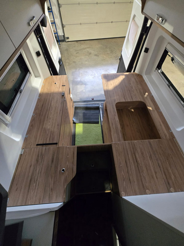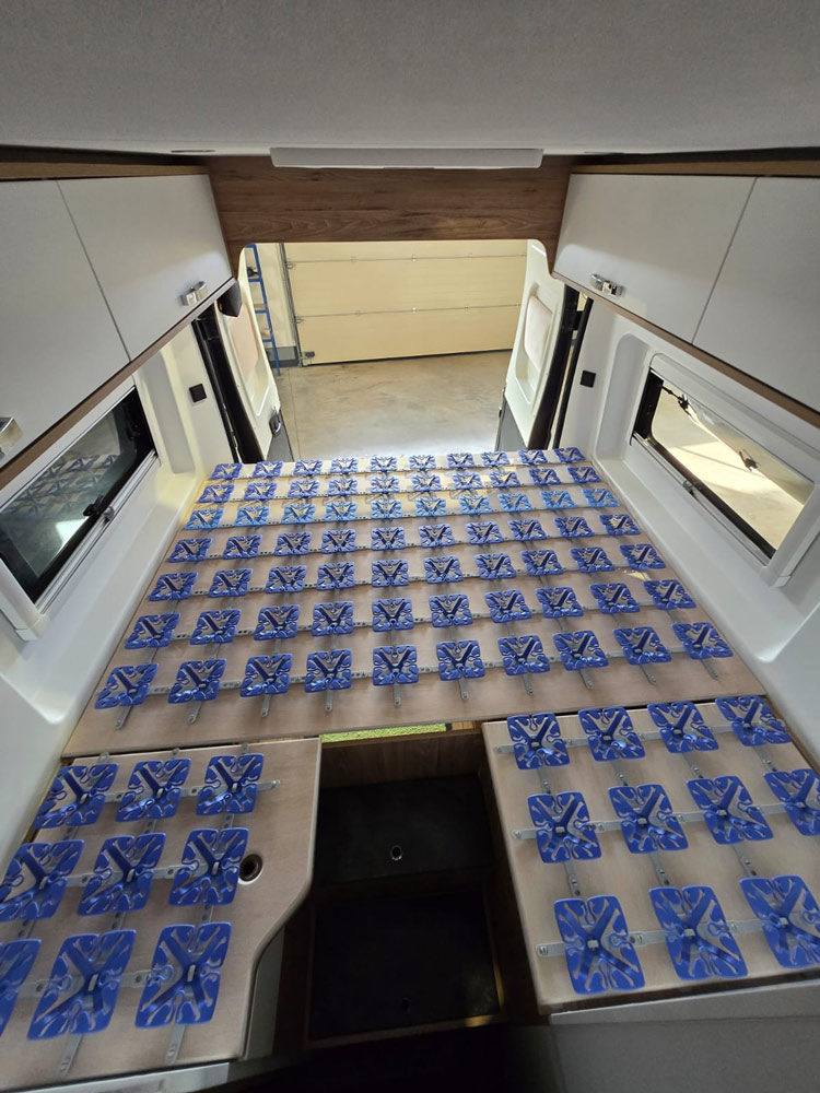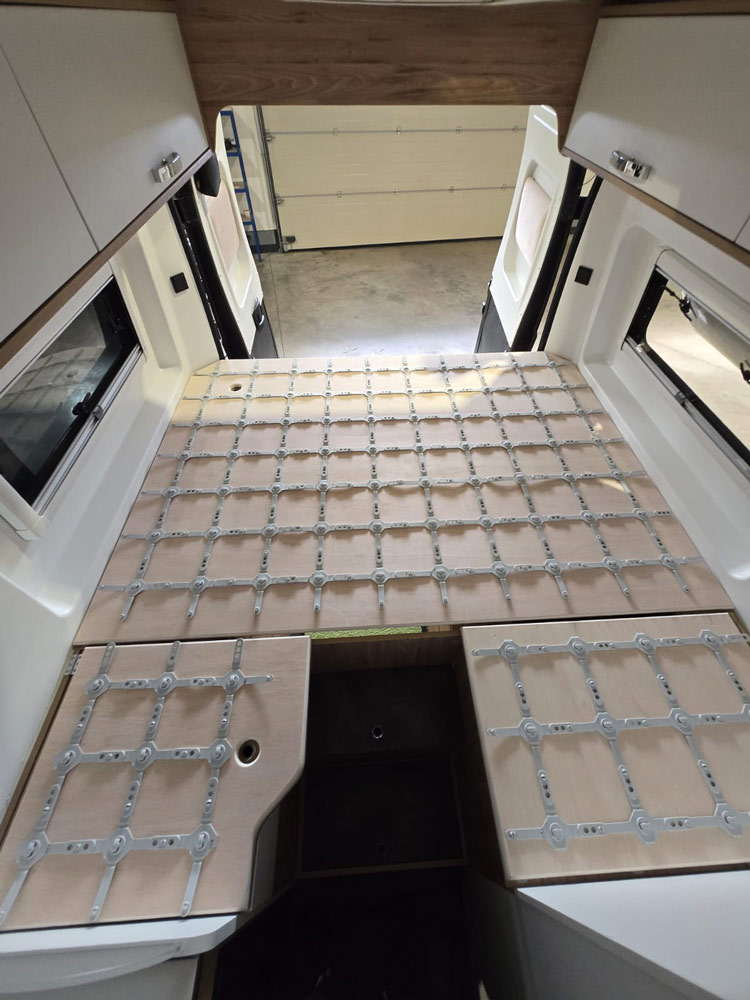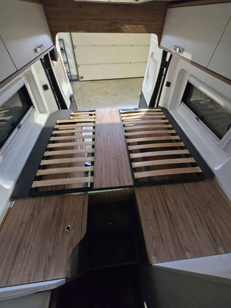 Mehr Komfort auf jeder Reise: In diesem Bestandsfahrzeug wurde das Bett auf ein modernes Tellerfedersystem umgerüstet. Das neue Unterfederungssystem sorgt für bessere Belüftung, ergonomischen Liegekomfort und einen deutlich erholsameren Schlaf – egal ob Kurztrip oder lange Tour.