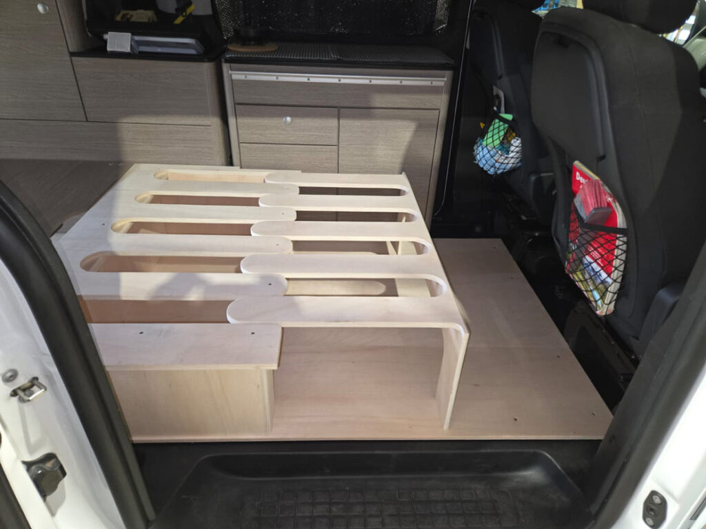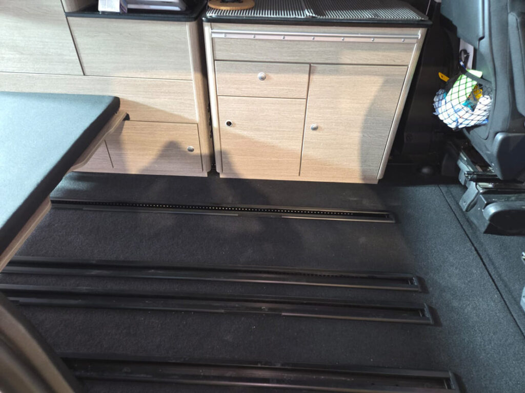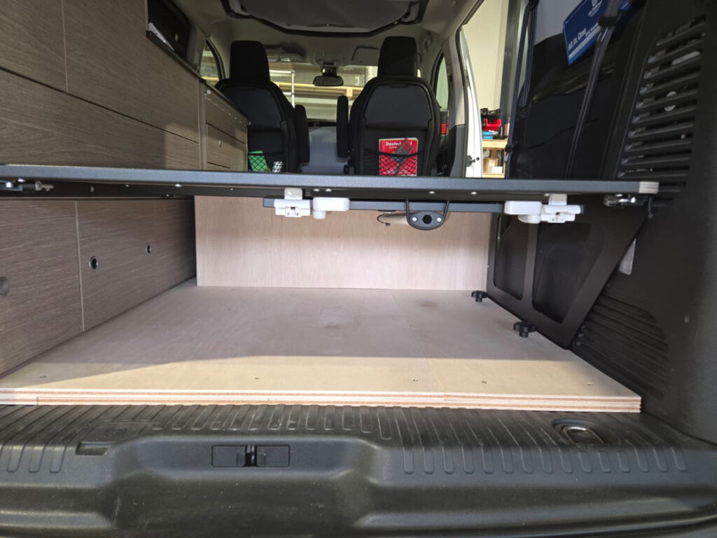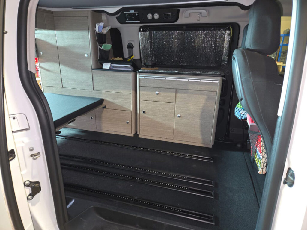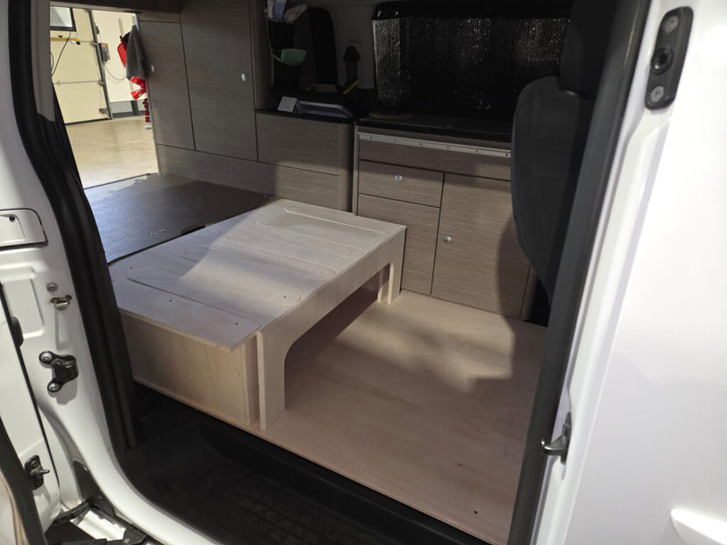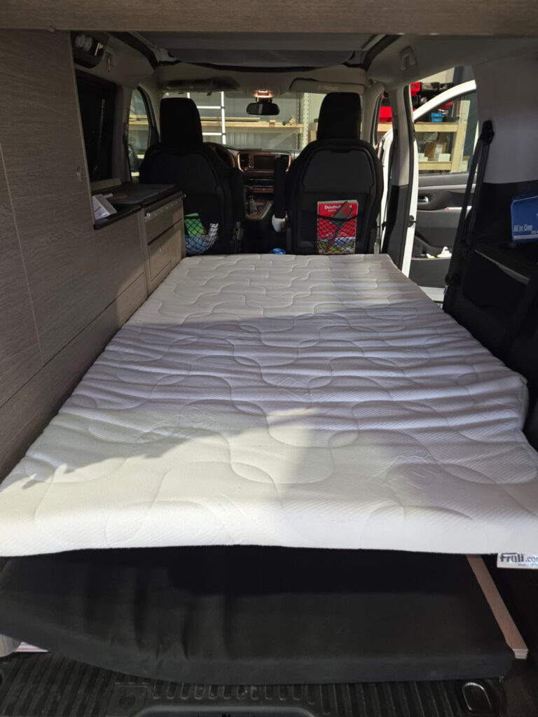 Im Rahmen dieses Camper-Umbaus wurde eine funktionale Schlaf-Sitzbank integriert, die komfortables Sitzen und entspanntes Schlafen miteinander verbindet. Die platzsparende Konstruktion nutzt den vorhandenen Raum optimal aus und sorgt für mehr Flexibilität im Alltag und auf Reisen. Durch den durchdachten Aufbau eignet sich diese Lösung ideal für einen modernen Camper- oder Van-Ausbau mit Fokus auf Komfort und Alltagstauglichkeit.