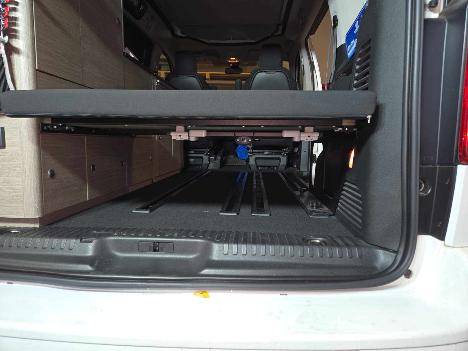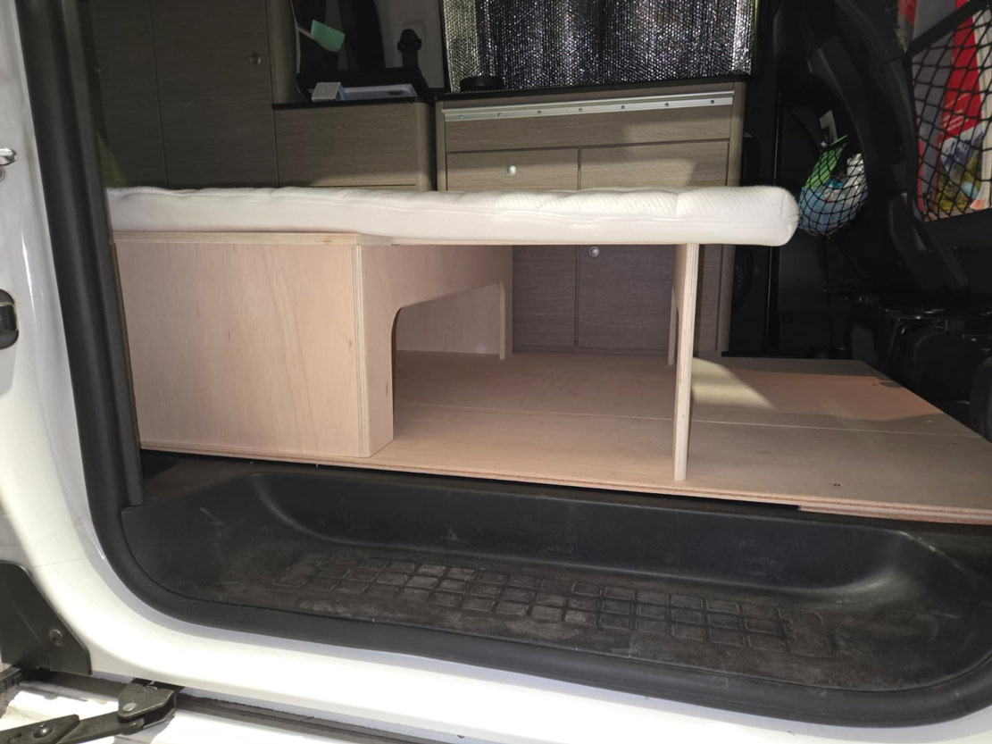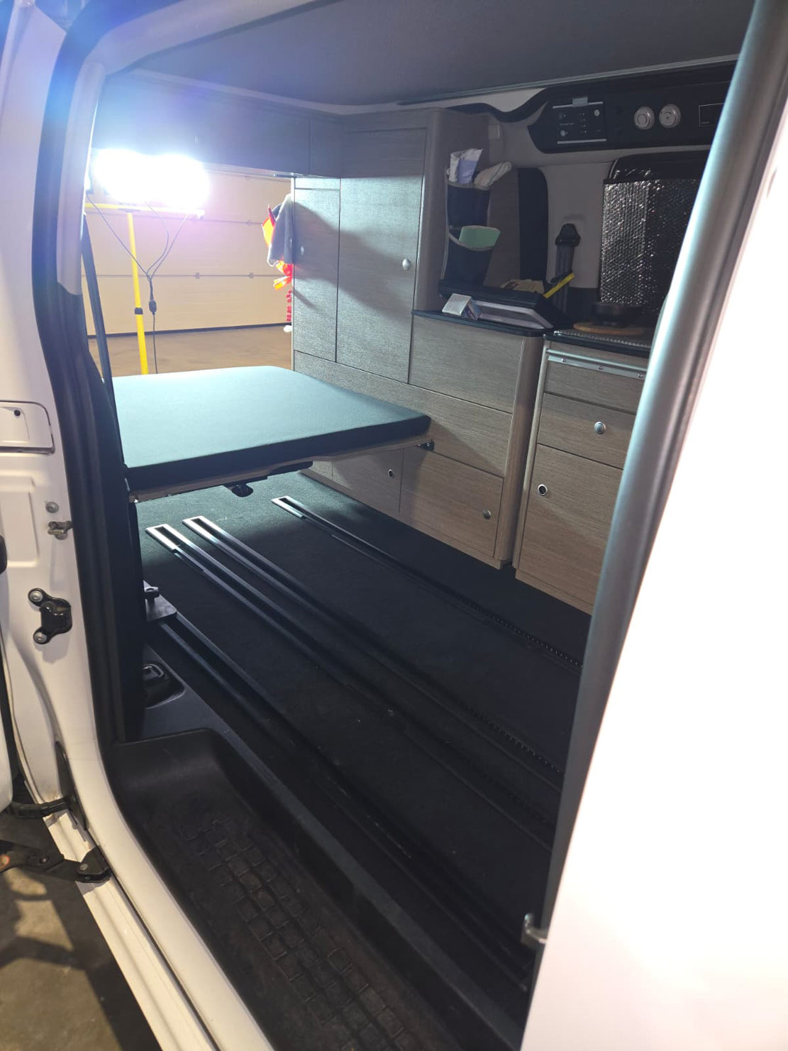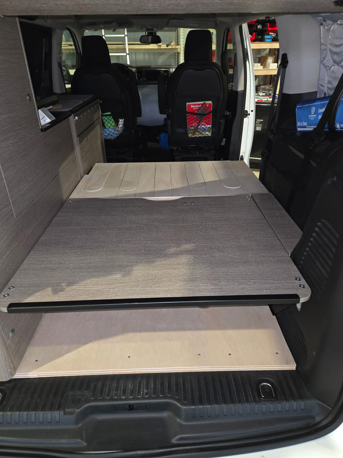 Im Rahmen dieses Camper-Umbaus wurde eine funktionale Schlaf-Sitzbank integriert, die komfortables Sitzen und entspanntes Schlafen miteinander verbindet. Die platzsparende Konstruktion nutzt den vorhandenen Raum optimal aus und sorgt für mehr Flexibilität im Alltag und auf Reisen. Durch den durchdachten Aufbau eignet sich diese Lösung ideal für einen modernen Camper- oder Van-Ausbau mit Fokus auf Komfort und Alltagstauglichkeit.