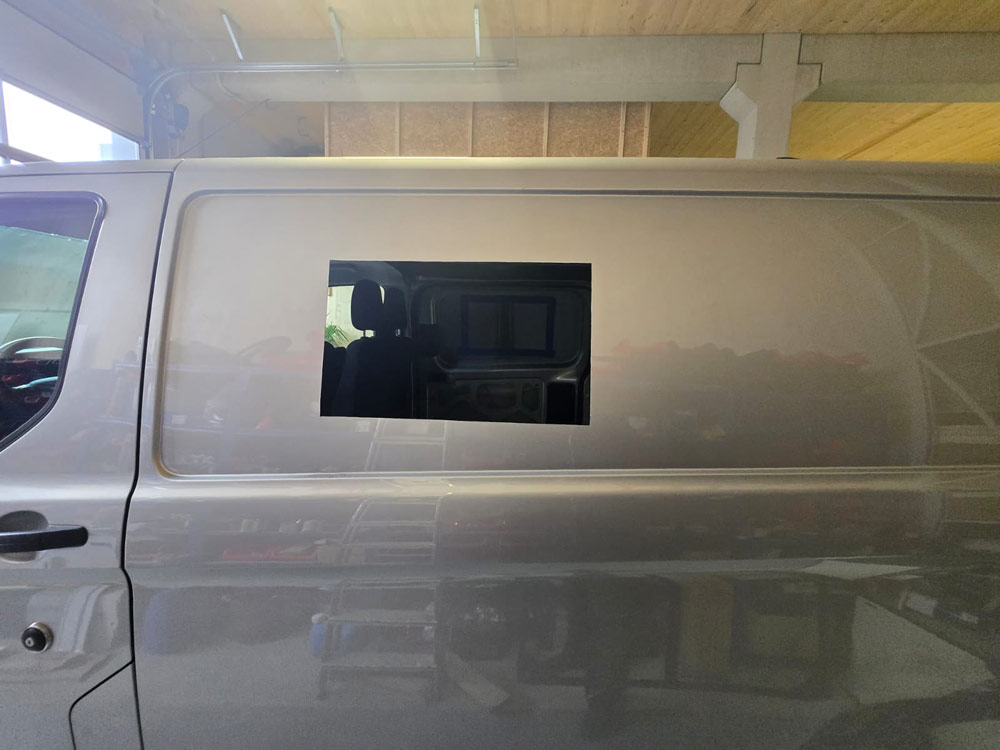 Mehr Licht, mehr Überblick, mehr Raumgefühl: Mit dem neuen Seitenfenster wurde der Ford Transit funktional aufgewertet. Der Einbau sorgt für eine bessere Belüftung und ein deutlich angenehmeres Raumgefühl – ideal für Alltag und Reise.
